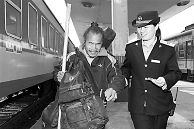 南阳火车站在客运岗位倡导“五心”工作法,即:“接待旅客热心,解答问事耐心,接受意见虚心,工作认真细心,对重点旅客关心”。以此带动全站干部职工提高服务技能,强化自身素质,优化服务环境,提升服务质量,努力为旅客提供舒适、优雅、便捷、安全的旅行环境,充分展示铁路部门的良好形象。图为10月23日,车站工作人员帮助盲人旅客进站上车。本报通讯员 郭永林 摄
