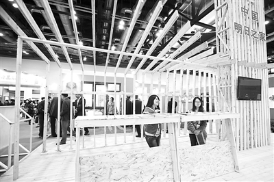 2013年10月23日,在北京博览会上展览的木结构房屋框架。 赵冰/CFP