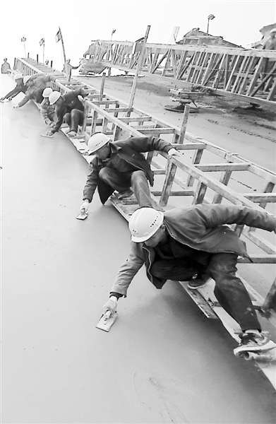 10月27日,在南水北调汤阴1标中国水电十局项目部工地,工人正在忙碌工作。南水北调中线干线汤阴段施工1标位于河南省汤阴县境内,工程长度为9.567千米。目前,上千名建设者全力以赴奋战在渠道混凝土浇筑一线,工程渠道开挖、渠道换填、大型交叉建筑物建设全部完成,渠道衬砌完成九成,主体工程10月底基本完工。