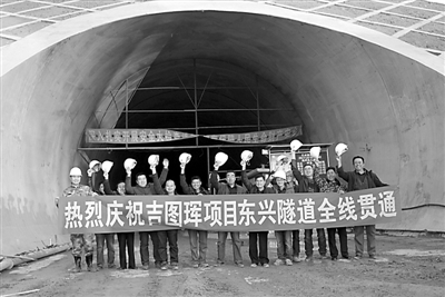 当日,国家重点工程吉林省吉(林)图(们)珲(春)铁路客专东兴隧道,经过建设者15个月的奋战,全线贯通。