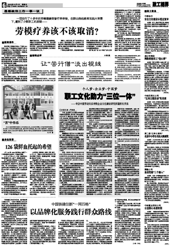 只要走进中铁建十五局集团所属项目的施工现场,都会看到一块醒目的亲情提示牌;而在员工宿舍,墙上则贴满了一张张温馨的“全家福”照片。从工前工后组织员工给家人发短信报平安,到开展万人安全签名活动;从直聘群众安全监督员,到推广班组安全“六到位”工作法,他们通过一系列生动形象的活动和措施,强化员工的安全意识,让员工真正参与到企业的安全管理中,企业连续12年蝉联全国“安康杯”竞赛优胜单位称号。如今,他们的做法已走出国门,被推广到中国铁建境外几十个国家的项目中。