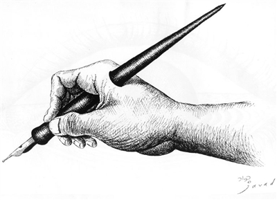 笔耕甘苦共存。它需要丰厚的生活阅历和驾驭情感世界的睿智。这幅画作抒发了作家心——手——笔的感人之情。朱立安·比纳派(罗马尼亚)