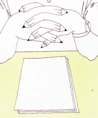 将作家的手指比拟成笔,这个联想是颇具匠心的。表达了“爬”格子的无悔追求。阿格塔伊(丹麦)