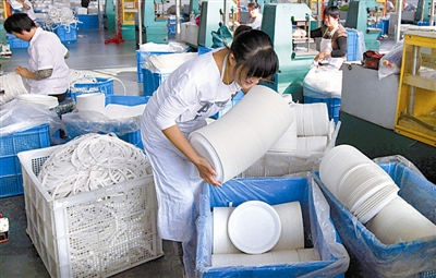 11月3日,山东远东农科环保发展有限公司的工人在生产环保餐具。