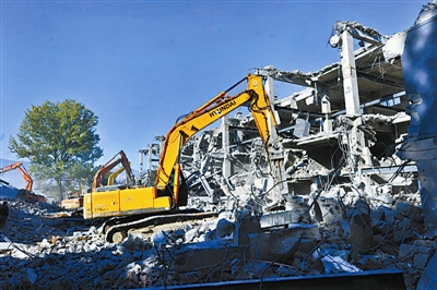 近日,北京市开始对京郊北部地区的昌平区阳坊镇东贯市村内的13栋4层小楼进行拆除。据悉,此次拆除面积约4万平方米。新华社发 (王京生 摄)