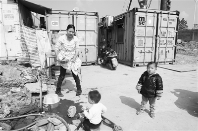 由于收入有限,工作时间比较长,周围没有合适的房可住,许多农民工都纷纷选择蜗居在集装箱里休息和工作。瑞昌 摄/CFP