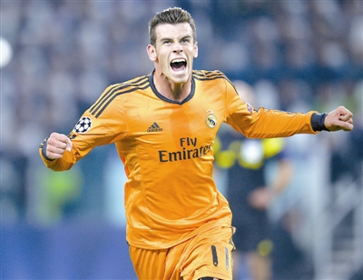11月5日,皇马球员贝尔庆祝进球。当日,在欧洲足球冠军联赛小组赛第四轮比赛中,尤文图斯队主场以2比2战平皇家马德里队。新华社发(阿尔贝托·林格里亚摄)