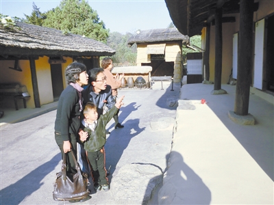 在旧居,我们看到一对朝鲜夫妇带着一个四五岁的孩子也来参观,他们一家虔诚地向金日成暨家人的照片鞠躬。还有一位中年男子,恭恭敬敬地把一支鲜花放在主屋外的台阶上。