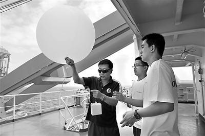 当日,中国第30次南极科学考察队大洋考察队在“雪龙”号上释放探空气球,以探测大气剖面的温度、湿度、气压等要素,这项科学研究将在“雪龙”号航行过程中连续进行。