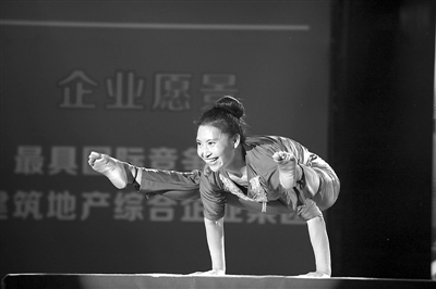 11月12日,演员在慰问演出上表演软功。当日,中华全国总工会文工团“心连心,走基层”活动来到深圳平安金融中心项目工地,将精彩节目送到建筑工人身边。平安金融中心由中国建筑一局(集团)有限公司总承包,总高度达660米,项目现在已突破250米。 新华社记者 毛思倩 摄