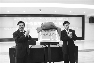 2013年11月6日,华晨汽车集团与辽宁省环保厅正式签订战略合作框架协议,并于同日隆重举办了辽宁省环保专用车辆工程研究中心揭牌仪式。本次合作,双方本着科学发展、构建企业社会价值的理念,立足汽车产业的绿色可持续发展,共同拓展业务领域,建立新型政企战略合作关系做出的全新尝试。旨在建成立足辽宁、辐射全国的环保专用车研发基地,以全球化视野,提升我国环保专用车的自主开发能力和水平,将先进的汽车工业技术应用于环境保护领域,为环保事业提供可靠的高技术保障,为推进生态文明建设工作保驾护航。