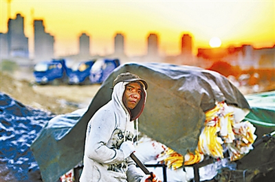 在小清河南路中段一处拆迁废弃的空地里,堆放着成山的煤炭,煤炭搬运工在煤山上将散炭装满麻袋,再送往百姓家中。煤场里临时搭建了小窝棚,住着近十名运煤工。他们白天在煤场里搬运煤炭,晚上就住在不足10平方米的窝棚里。泡沫板搭建而成的窝棚四处散风漏气,寒冬时节室内外一个温度,房间里只有一扇小窗户能透进一点温暖的阳光。
