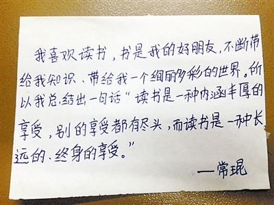 在广东佛山图书馆,一位外来务工子女写下读书感言。