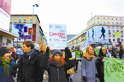 在华沙举行的联合国气候大会结束第一周、部长级会谈即将开启之际,一场大规模游行在华沙上演。数千名环保人士16日走上街头,要求气候谈判“少一点纷争,多一点行动”。周锐 摄