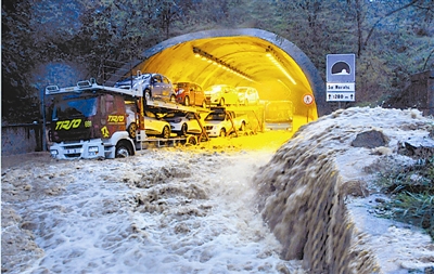 当地时间11月18日,意大利撒丁岛遭暴风雨袭击,造成至少18人死亡,一座桥梁倒塌,多辆汽车被冲走。谢涛 供图