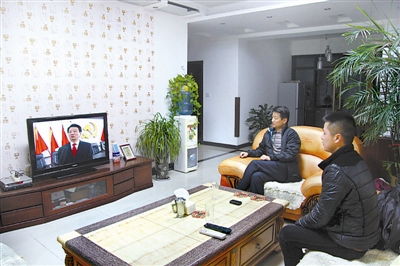 11月20日晚,陕西高陵县湾子镇党委书记药红岗在家中观看县电视台在黄金时段播出的自己述廉的专题片。