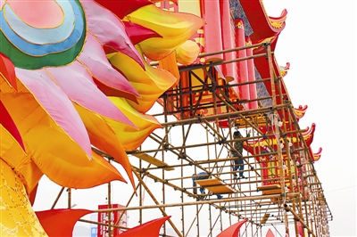 在河北省承德市双滦区《鼎盛王朝·康熙大典》实景演出现场,一场盛大的皇家灯会正进入开幕前的最后冲刺。主办方希望通过打造与世界文化遗产避暑山庄相呼应的文化旅游产业集聚区,促进经济的转型升级。王富国 摄/CFP