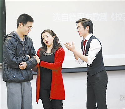 为了让学生与歌剧来个“亲密接触”,李晶晶还现场邀请学生扮演歌剧中的角色,并演唱了普契尼歌剧《贾尼斯基基》中最著名的女高音咏叹调《我亲爱的爸爸》,以及歌剧《艺术家生涯》中的《漫步街上》等片段。同时,上台体验的同学们那略带生硬的“客串”表演也将大家逗得捧腹大笑。