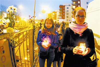当地时间11月22日,在拉脱维亚首都里加,超市屋顶坍塌事故现场,民众自发悼念遇难者。据称,21日发生的超市屋顶坍塌事故已造成包括救援人员在内的45人丧生。谢涛 供图