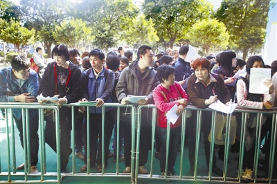 11月25日,广州,获得《配售通知》的申购家庭在销售中心现场排队认购房屋。