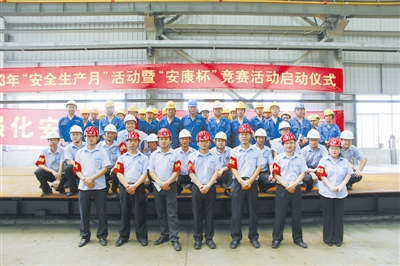 三是成立“铆工青年突击队”,争创“工人先锋号”。阳光公司铆工班是个年青的集体,平均年龄28岁。为了顺利完成台山核电站工程,确保阳光公司在核电领域钢结构的主导地位,公司工会和团支部一起专门组织成立了台山核电“铆工青年突击队”,他们克服了工期紧张,构件厚重,工序繁杂等困难,组织全体铆工班所有参战员工,对图纸进行会审和工程难点分析,充分发挥以往钢结构工程上形成的经验和技术优势,群策群力、集思广益、整改思路,为顺利完成构件现场安装打下了坚实的基础,同时发挥年青团队的优势,发扬铁军精神,加班加点,为工程按期完工作出了应有的贡献。