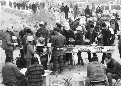 虽然餐饮质量在改善,但目前工地的就餐环境可以说还相当恶劣。