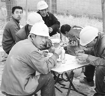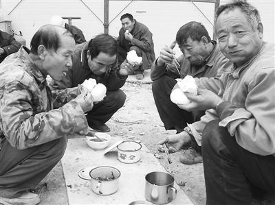 对于这样简陋的饮食,中老年一代农民工表现出乐天知足的样子。