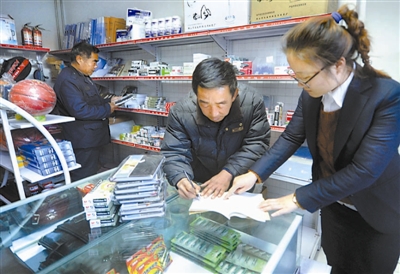 11月28日,村干部在“廉政超市”对选购的物品进行统一登记记账,以便季度结算。
