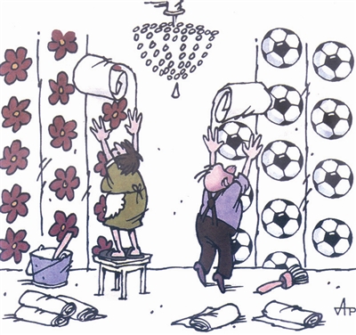 夫妻间不同的审美情趣时常表露于生活之中,“求同存异”堪称解决矛盾的最佳选择。瞧,他们在贴壁纸时都表达了自己的意愿。