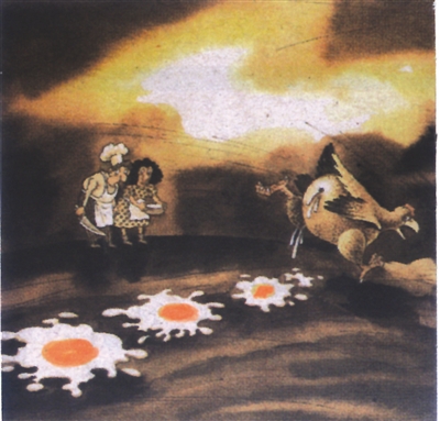丈夫挥刀欲杀鸡炖肉,妻子却想提篮拾蛋。二人争吵得不可开交,母鸡闻风仓皇逃去。这对夫妻可谓是:鸡飞蛋打。
