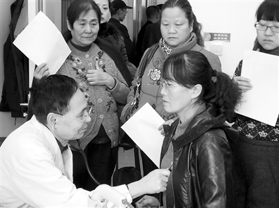 在兰州市第一人民医院的体检中心,劳模正在接受体检。