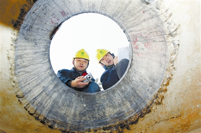 图为聊城公司电缆运行人员正在对新华西路#23电缆井进行隐患排查。