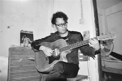 在采访期间,唐子杰坐在他简陋的出租屋内,轻轻弹起他的音乐。由于住的是“握手楼”,隔音极差,隔壁楼房租客的谈话声我们能听得一清二楚,为了不影响邻居,他一直只是轻轻弹,轻轻唱,然而有很多个瞬间,我都被他的歌声深深打动,特别是写给留守儿童的《我的孩子我的牵挂》。我一时感想良多,梦想不是口号,而是牵引你前进每一步的力量。
