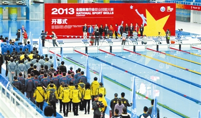 随着体育逐渐成为现代人的一种生活方式,赛场上的许多运动项目已经走入了寻常百姓家。但当人们在进行体育锻炼时,总会遇见这样那样的意外事故,运动损伤的防护知识和治疗方法在此时就显得尤为重要——近日,我国体育行业内首次以“岗位技能大练兵”为主要内容的群众性竞赛活动“2013全国体育行业职业技能大赛”在国家游泳中心(水立方)举行,来自全国各地的游泳救生和运动防护能手向人们展示了他们精湛的职业救护技能。