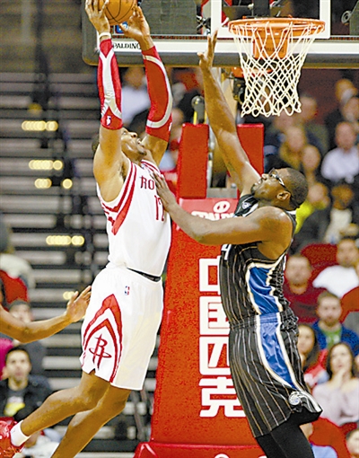当日,在2013-2014赛季NBA常规赛中,休斯敦火箭队主场以98比88战胜奥兰多魔术队。新华社发(宋穹摄)