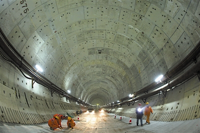 12月10日,世界最大直径单管双层公路隧道——扬州瘦西湖隧道顺利贯通。扬州瘦西湖隧道由中国铁建十四局集团承建,下穿素有“园林之盛,甲于天下”美誉瘦西湖风景区核心区段,全长3.6公里,设计为单管双层双向四车道。隧道主体盾构段采用14.93米的世界超大直径泥水平衡盾构机施工,要穿越长达1200多米的全断面硬塑粘土地层。这一隧道攻克了全断面硬塑粘土地层等世界性盾构施工难题,多项技术达到国际领先水平,并获得“全国建筑业绿色示范工程”荣誉称号。新华社发(杜振珂 摄)