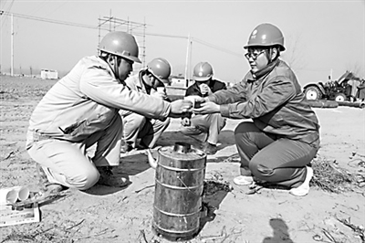 12月,天寒地冻,为做好电网建设一线施工人员的后勤保障工作,国网山东单县供电公司工会为每个工地都送去了一个便携式小茶炉,让野外施工人员能够喝上热水。图为12月10日,施工人员在施工间隙喝着热茶。李晓华 摄