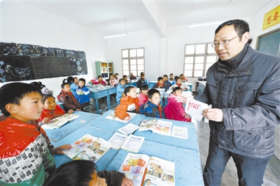 12月10日,在湖北省保康县寺坪镇李家村小学,阮班琼在给学生们上英语课。