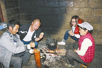 长春车辆段图们至北京K215次旅客列车发电车乘务员刘政权,坚持8年资助四川凉山州山区一贫困家庭4姐弟上学,共计资助四万余元。图为刘政权(左二)利用休假,赶赴凉山,了解贫困家庭一家人生活情况。 于 涛 摄