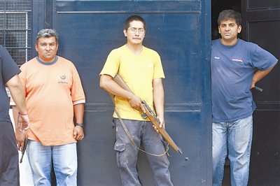 当地时间2013年12月10日,阿根廷圣米格尔-德图库曼,店主持枪保护自己店铺不被抢劫。东方IC 供图