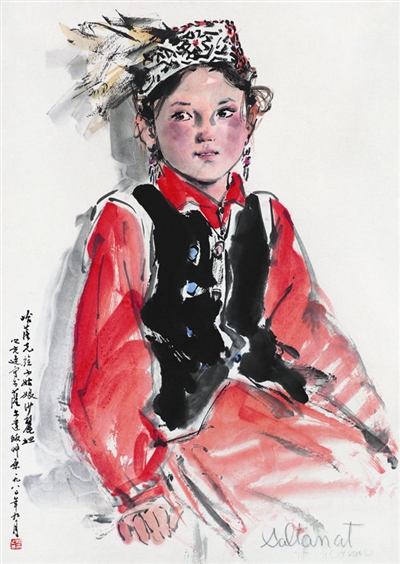 哈萨克族小姑娘沙丽妲(国画) 杨之光