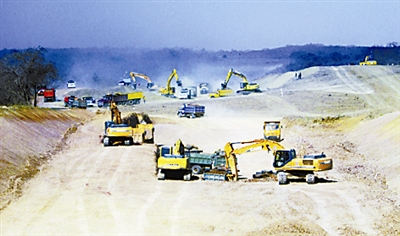 日前,中铁四局二公司委内瑞拉经理部抓住当地旱季的有利时机,充分调动全体员工生产积极性,全面掀起年末施工生产高潮。图为该公司委内瑞拉北部铁路拉槽土石方开挖施工现场。 田振清 李旭 摄