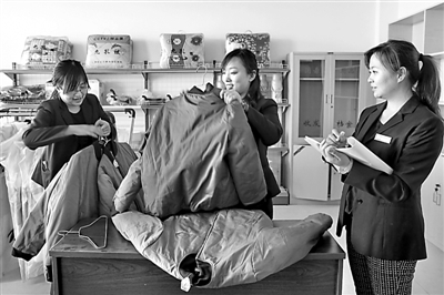 12月18日,秦皇岛市东环里社区的工作人员在“一家亲爱心超市”登记爱心棉衣,准备向社区贫困家庭免费发放。据悉,超市内的物品都是社区居民和爱心企业捐赠,免费发放给低保户和贫困家庭 。 新华社记者 杨世尧 摄