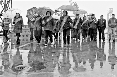 12月17日,安徽省芜湖市奇瑞出租车公司爱心车队载着周家山社区10名先进老年志愿者,来到远离市区的新联造船厂参观。看到老厂新变化,76岁的省劳模褚植根高兴地说:现在到哪儿都离不开拐杖,如果不是奇瑞爱心车队带我们出来看看,真不知道原来芜湖老造船厂现在建设得这么好!戚良鹏 王莹 摄