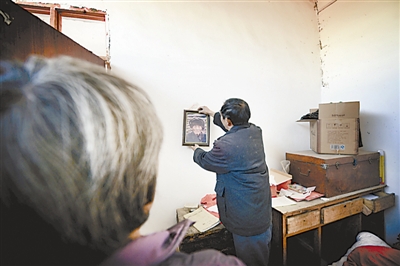 赵志清把老父亲生前在老家砖房前的留影放大了一张挂了起来。