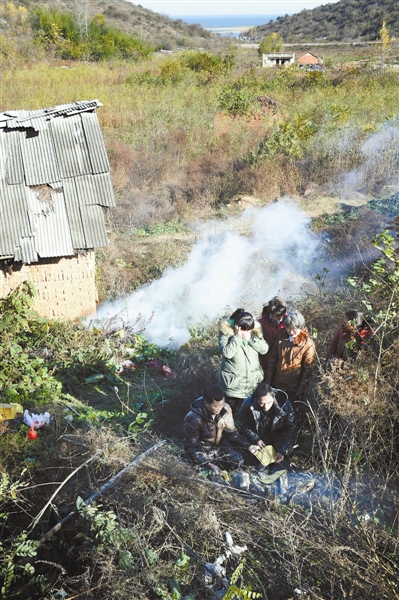 面对着长眠于地下的祖先,赵志清全家点燃了纸钱。