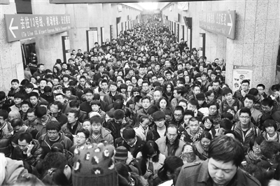 2013年12月6日,北京地铁里的密集人群。樊甲山/CFP