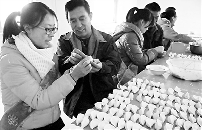 当日是农历二十四节气中的冬至,山东聊城大学生命科学学院的志愿者开展了 “包饺子、送爱心”活动,他们来到新龙湾居民小区建筑工地,和工人一起包饺子、吃饺子,温暖过节。 张振祥 摄