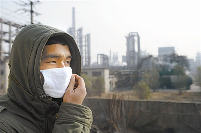 这是12月23日,在马钢(合肥)公司外,一名市民戴着口罩经过。