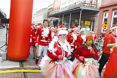 当日,这里举行“圣诞老人”赛跑活动。来自全美各地的3000多人打扮成“圣诞老人”的模样,加入浩浩荡荡的跑步队伍,为即将到来的圣诞节增添了浓浓的节日气氛。